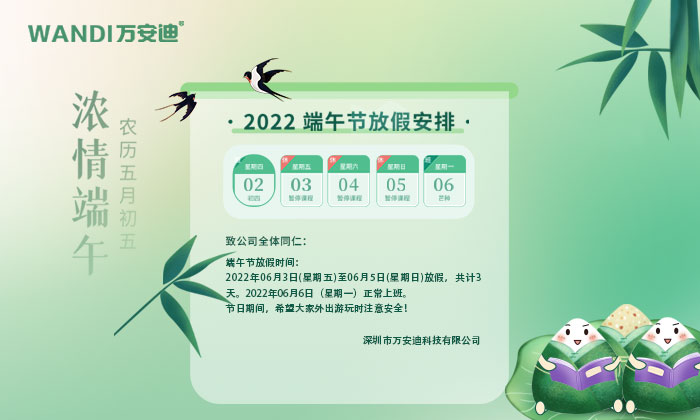 深圳市萬安迪科技有限公司2022年端午節放假安排: